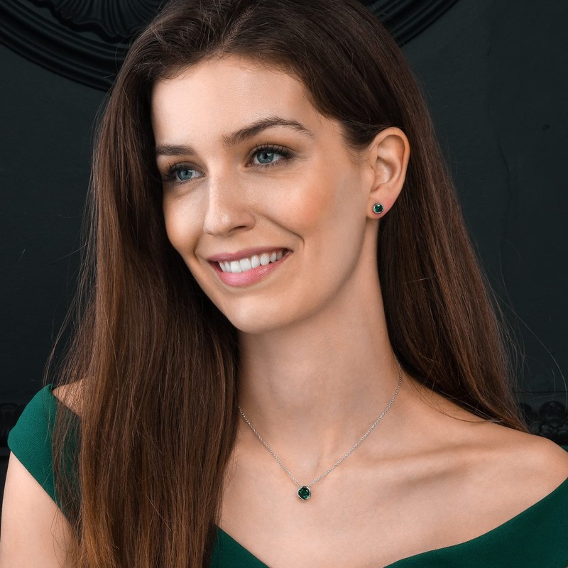 - 8mm round sparkling emerald green cubic zirconia stone set on a simple 925 silver bezel pendant with an adjustable 45cm chain including 5cm extender links. Pendant size 10mm x 10mm