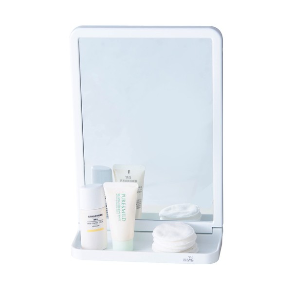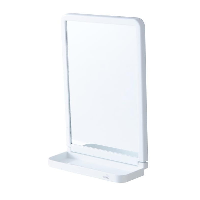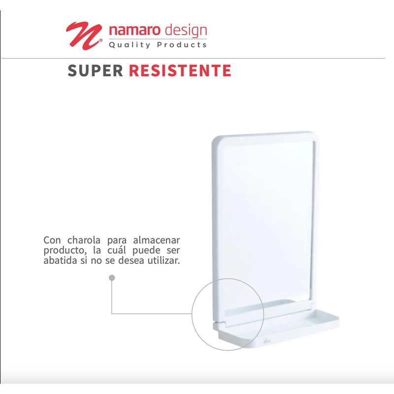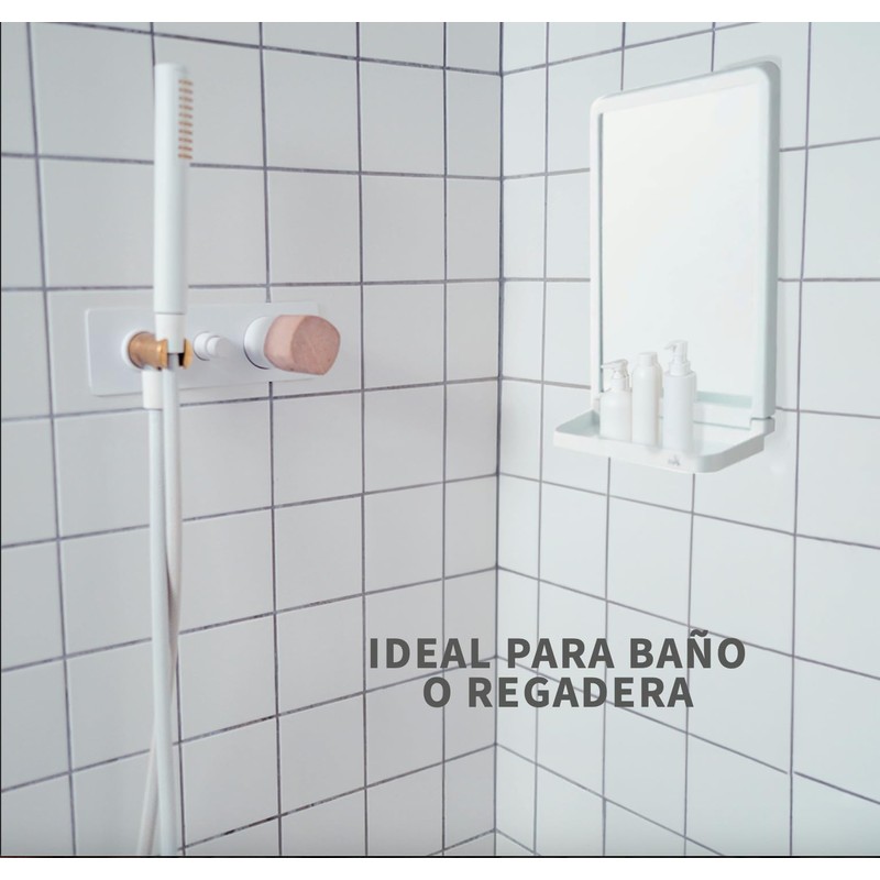 NAMARO DESIGN-Espejo de Succión Para Baño con Repisa Plegable, con doble mecanismo de colocación, fabricado en Plástico en color Blanco