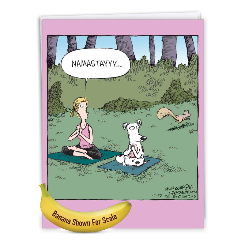Namastayyy - Funny Dog Birthday Card with Envelope (Extra Large 8.5 x 11 Inch) - Humorous Yoga, Zen Stationery Notecard for Women, Girls - Animal Cartoon Design J1777BDG by NobleWorks Store