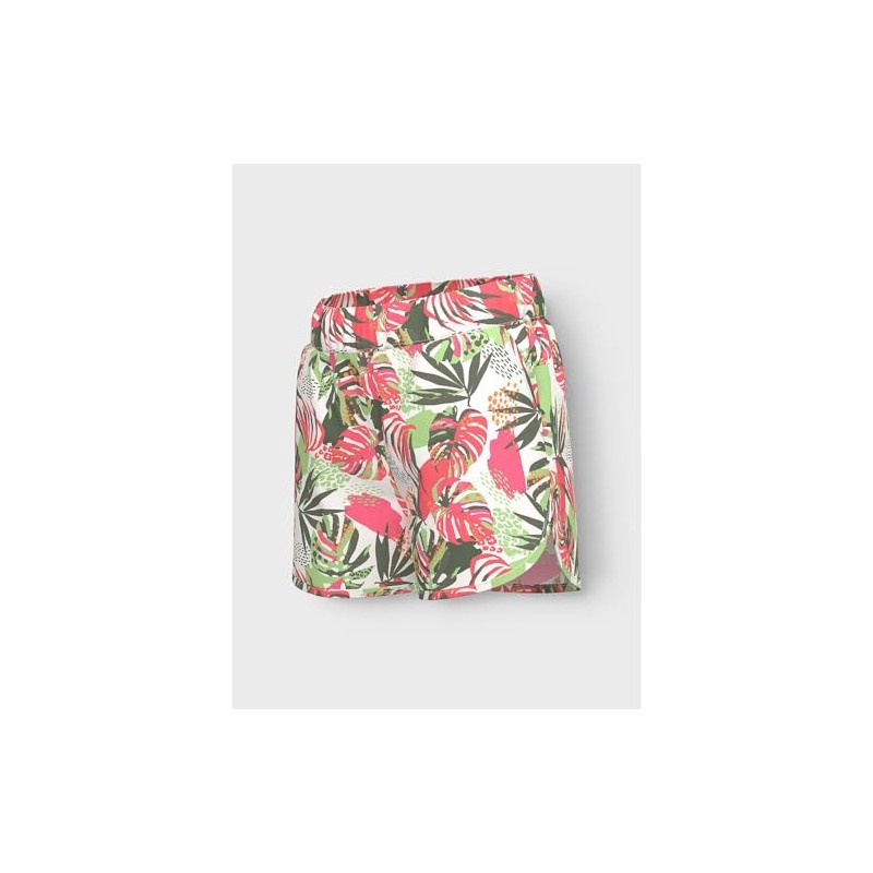 NAME IT Nkfvinaya Ffff Noos Girls' Shorts, Bright white/print: tropical