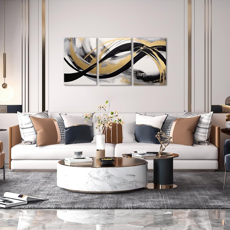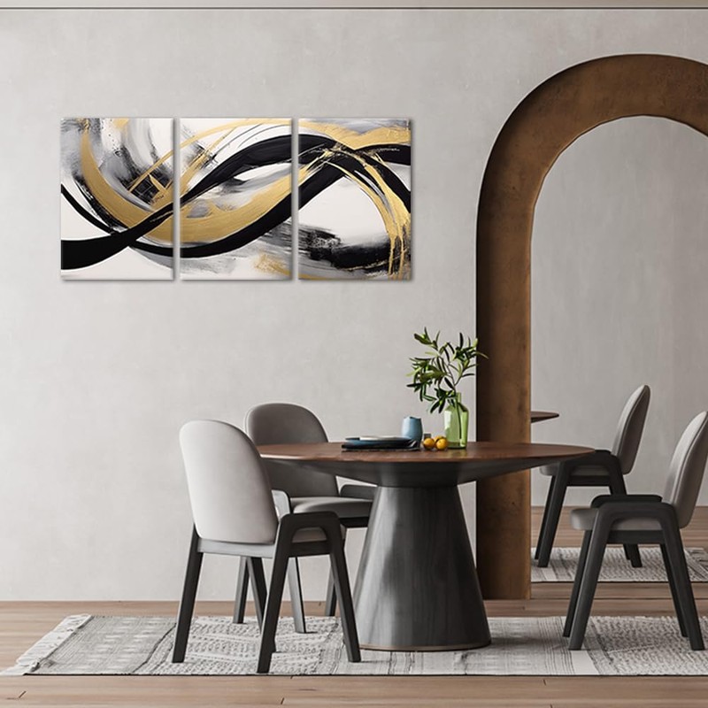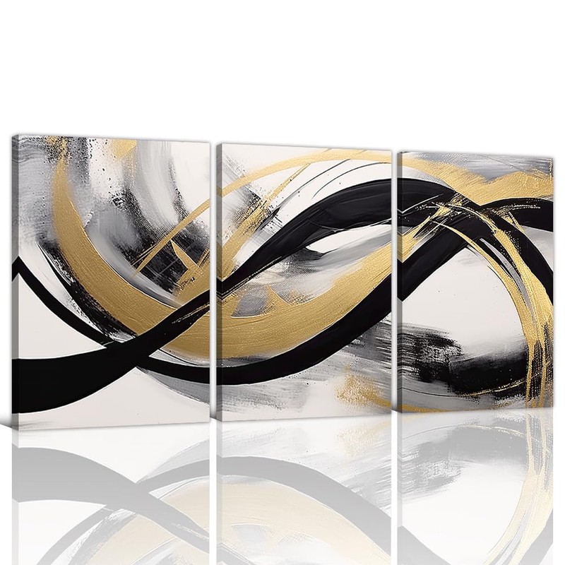 NAMENLAIMI Black and Gold Canvas Prints Wall Art 3 Piece Abstract Black White and Gold Picture Prints Large Abstract Paintings for Living Room Bedroom Decor Frame(Abstract-3,12.00" x 16.00" x 3Pcs)