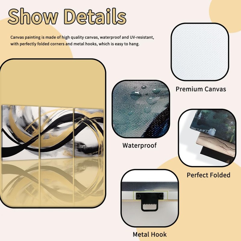 - High Quality : Abstract canvas painting adopts high-definition printing technology, the image is printed on high-quality canvas, and the fading-resistant ink is used, with bright colors and rich details. The canvas is delicate in texture, waterproof and ultraviolet-resistant