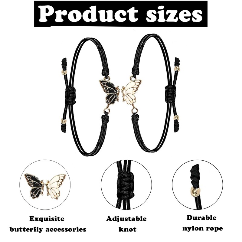 - Adjustable butterfly bracelets: the maximum length of the friendship bracelet is 26 cm / 10 inches with sliding knots. Simply pull the cord, you can easily put on or loosen the bracelet as your needs. The package contains 1 black butterfly bracelet and 1 white butterfly bracelet.
