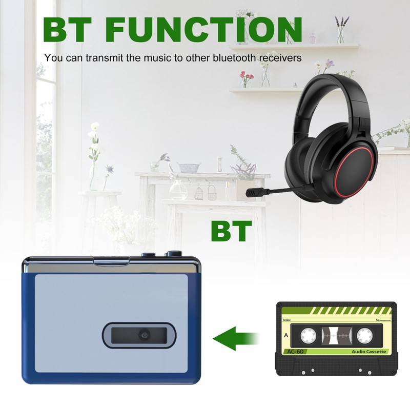 - Wireless BT Connection: This BT cassette player can wirelessly transmit cassette music to your BT headphones or speakers, eliminating the need for wired headphones or speakers, and allowing you to enjoy the convenience of wireless.
