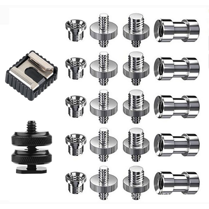 - The package contains 22 camera converters with 1/4 inch to 1/4 inch and 1/4 inch to 3/8 inch screw adapters.