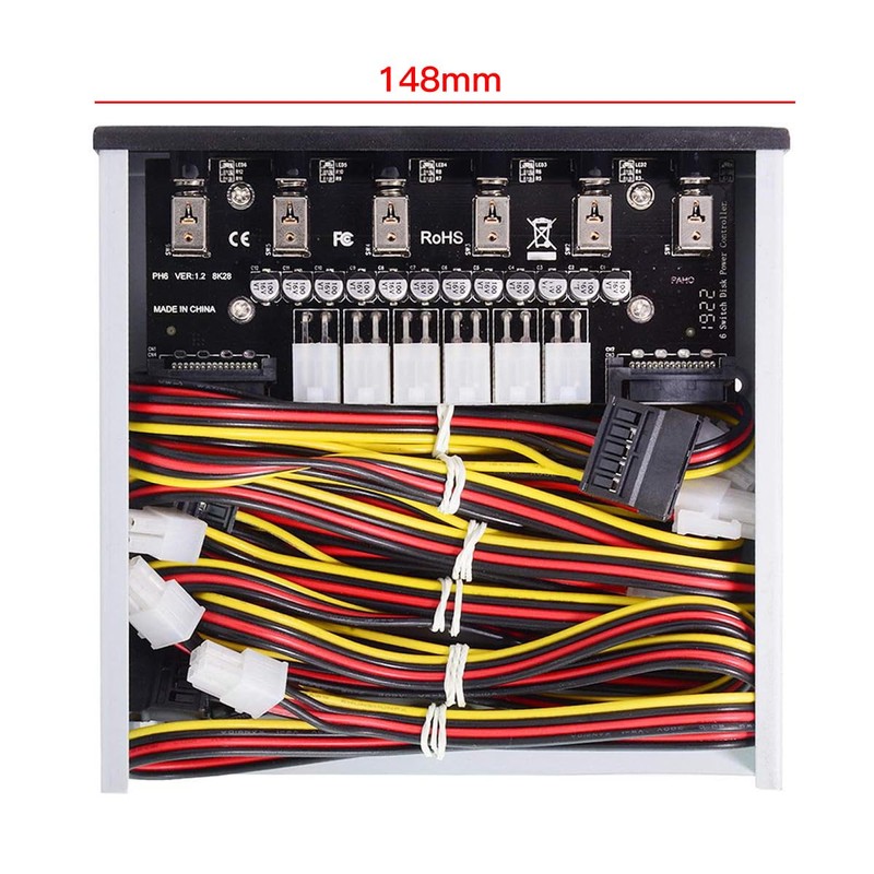 - With 6 individual self-locking switches, this system allows for independent control of 6 power outputs. Each power output is equipped with an indicator light for easy monitoring. This enables seamless switching between multiple systems and ensures optimal performance for your HDDs and SSDs.