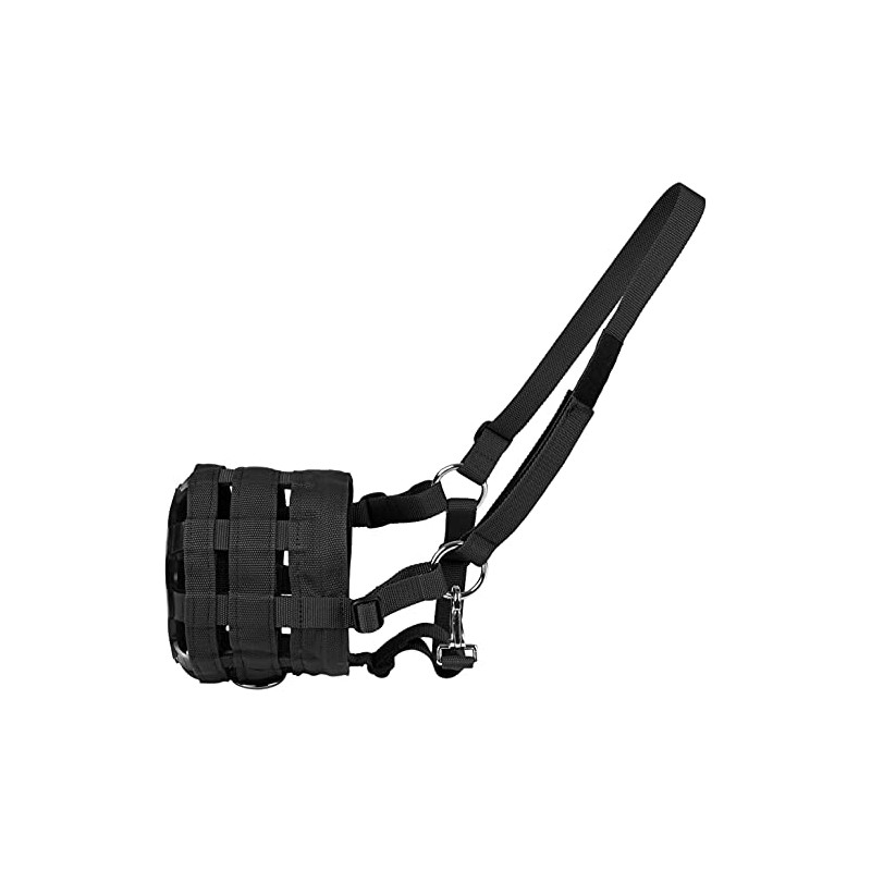 Namvo Easy Breathe Grazing Muzzle Attachment, Black Horse Muzzle, Nylon Grass Muzzle with Halter