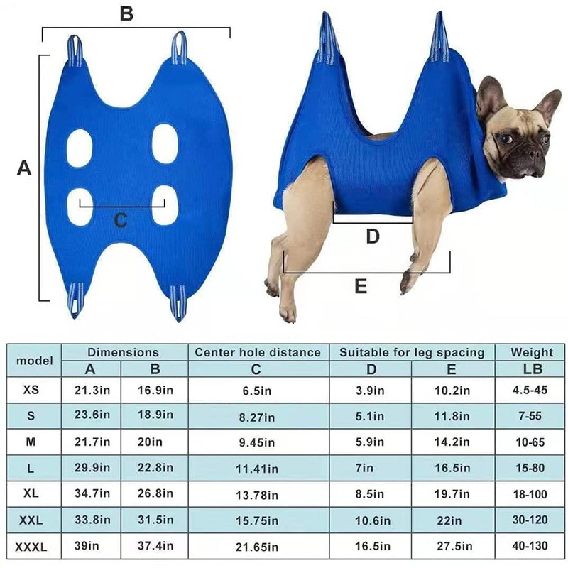- [Easy To Use]-Just place pet legs in holes, wrap around and use the S-hooks to hang. Hang the pet in the air, exposing the four feet and head, It has a front and a back. The wide side is for the head and the narrower is for the tail,use it correctly.
