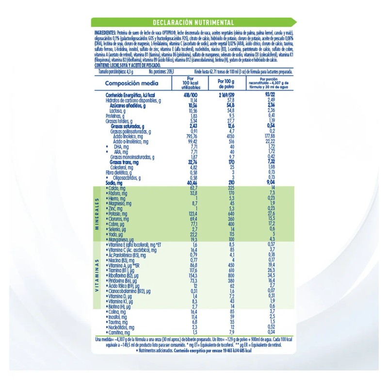 Contiene DHA, vitaminas y minerales esenciales para el desarrollo