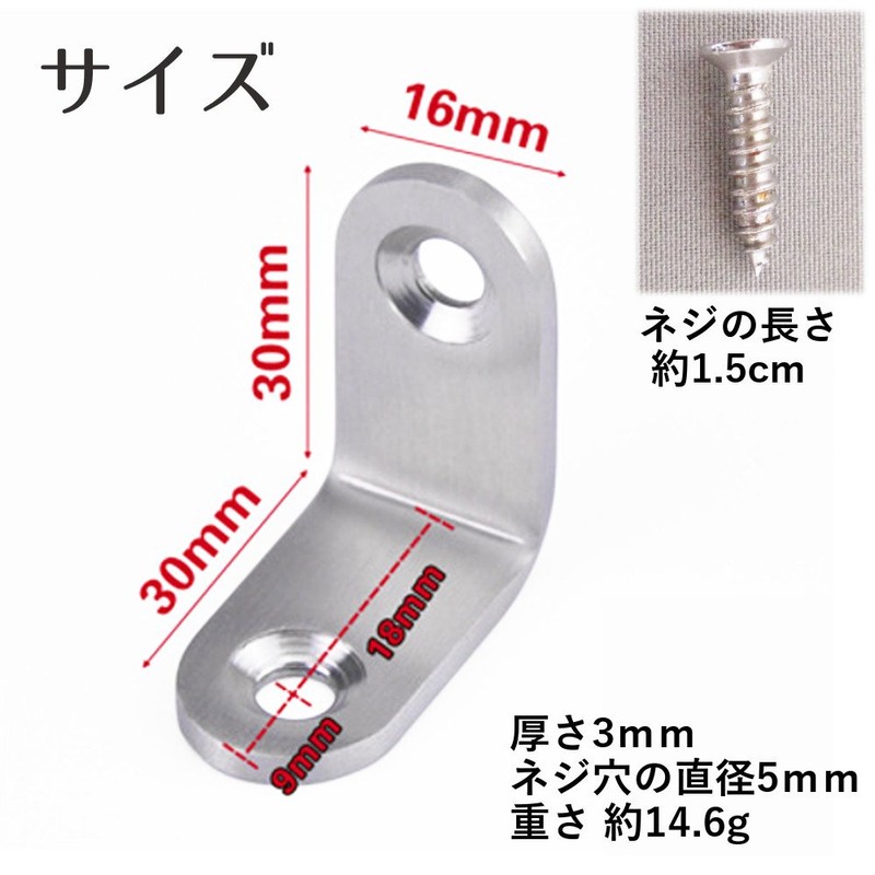 (Nanairokan) Stainless Steel L-Shaped Angle Bracket with Dedicated Screws Corner Brace Thickness 0.1 inch (3 mm) Reinforced Joint Alloy Tool (1.2 x 1.2 x 0.6 inches (30 x 30 x 16 mm)