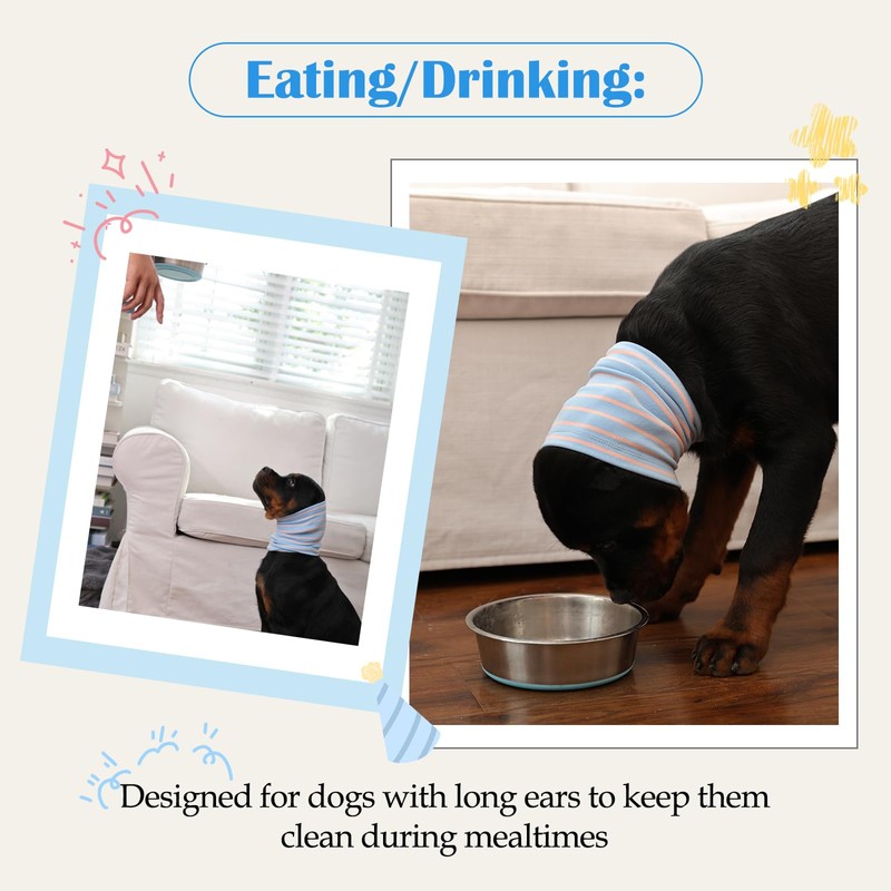 - Breathable and Soft Ear Cover: Made of 90 polyester, 10% spandex, snoods for dogs prevent moisture buildup and neck chafing. Stretchy fabric securely wraps ears during baths/swimming, keeping long-haired dogs' fur away from food/water. Retains heat for cold weather use as a warm scarf. Protects surgical wounds and prevents post-bath ear infections