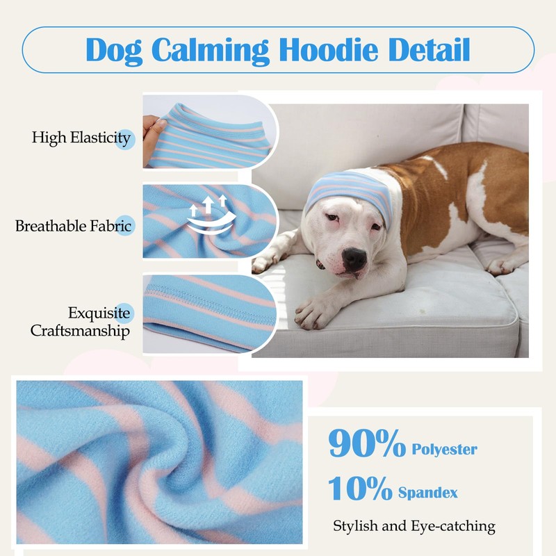 Nanaki Calming Hoodie Dog Grooming Ear Cover Anxiety Relief-No Shake Dog Ear Wrap Hematoma, Striped Head Wrap Snoods for Noise Protection, Bath, Fireworks, Thunderstorm, Blow Drying, Warm-Keeping