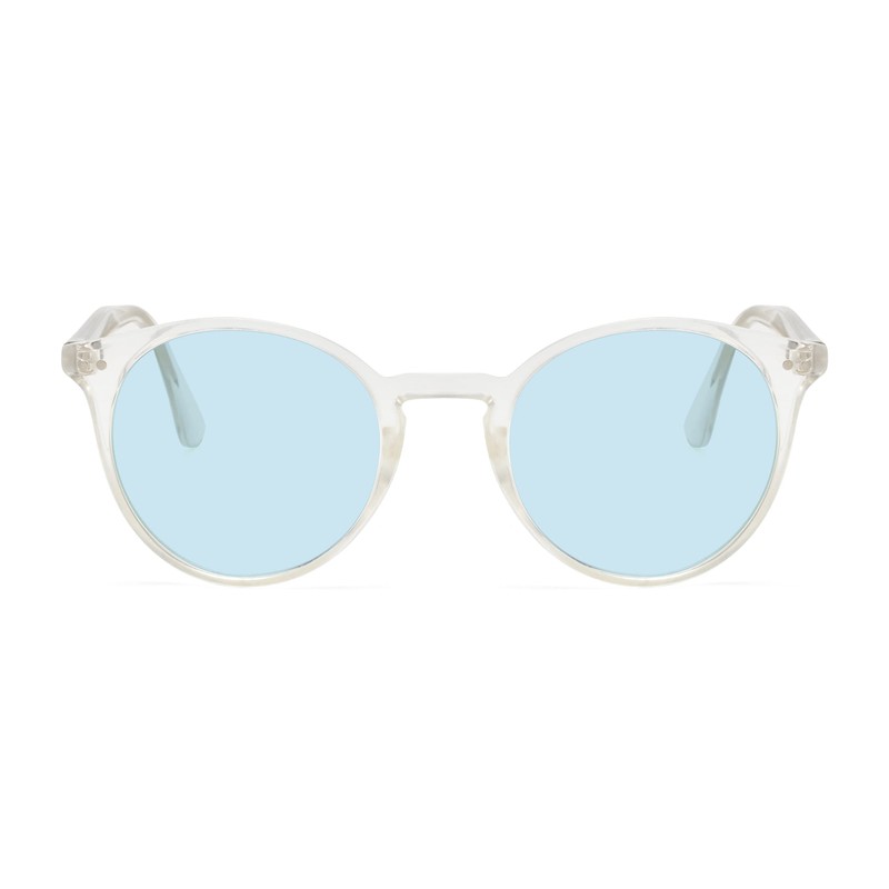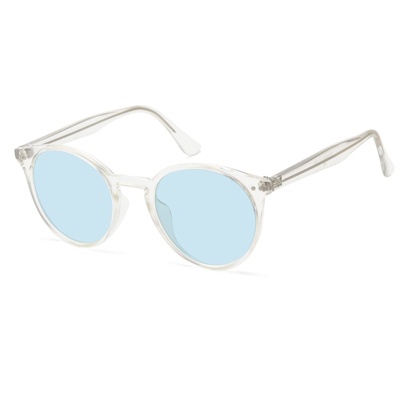 [nanala] Nanara Boston UV Protection Round Sunglasses, Clear Frame, Kamakura Design, Matsueku OK TY2942, with Case for Men & Women, clear/light blue, Free size