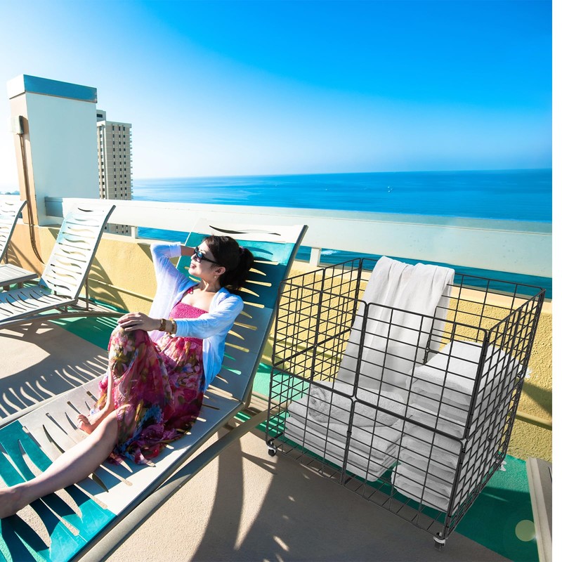 - Extra Large Volume: The assembled storage basket bin measures L24.4" * W24.4" H27.7" , perfect for holding beach towels, pool toys, floats noodles, water balloons, surfboards, swimming rings, floating beds, to keep your pool area tidy