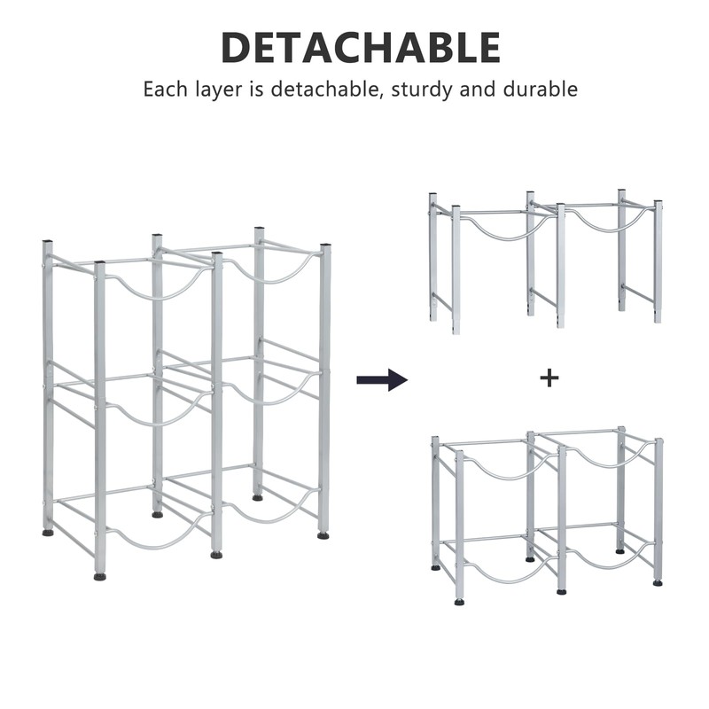 Nandae Water Cooler Jug Rack, 3-Tier Heavy Duty Water Bottle Holder Storage Rack 5 Gallon Water Jug Holder for 6 Bottle, Sliver