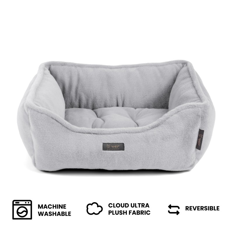 - REVERSIBLE DESIGN: This cozy and fuzzy dog bed is easy to invert and washable, providing a fresh, clean, and plush resting spot that helps alleviate pressure on sensitive or elderly joints. Our 25” W x 21” D x 10” H pet bed features a scooped front panel, easy for pets to climb into and out of.