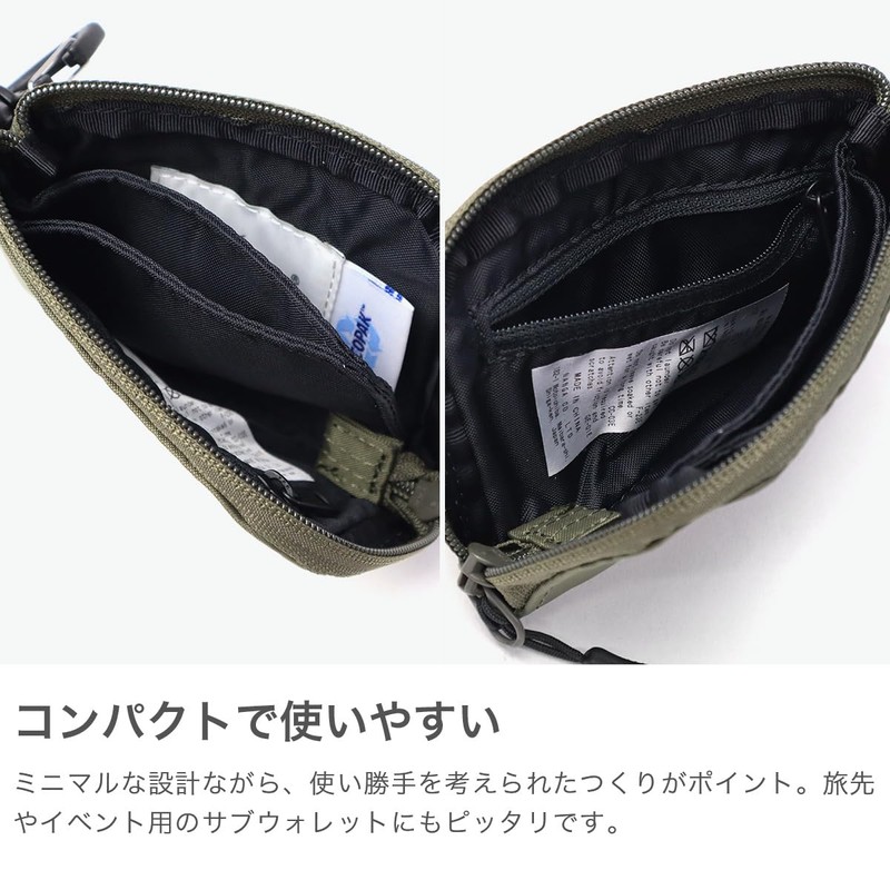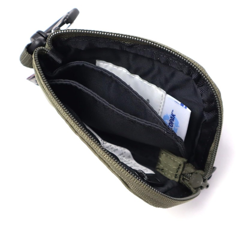 - ■Size: One size fits all; W 5.1 x H 3.5 inches (13 x 9 cm). *Please be aware that there may be slight differences in size depending on the product. ■Weight: Approx. 1.8 oz (50 g). ■Material: Outer fabric/RBC400 (Recycled polyester) Grid portion/EPX200 (Recycled polyester) Lining: 210D nylon. Features: Comes with 3 compartments for easy organizing cards, passes, and bills. Includes a zipper pocket on the inside for storing coins. Comes with snap hook for easy attachment to bag or belt loops