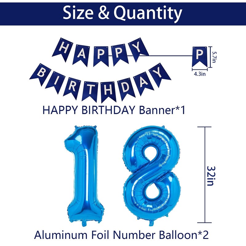 NANINUNENO 18th Birthday Party Decorations In Blue Boys And Girls, Supplies Happy Balloons With Banner, Numbers, Star Streams, Swirls Hanging
