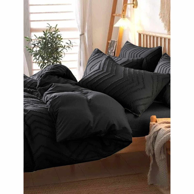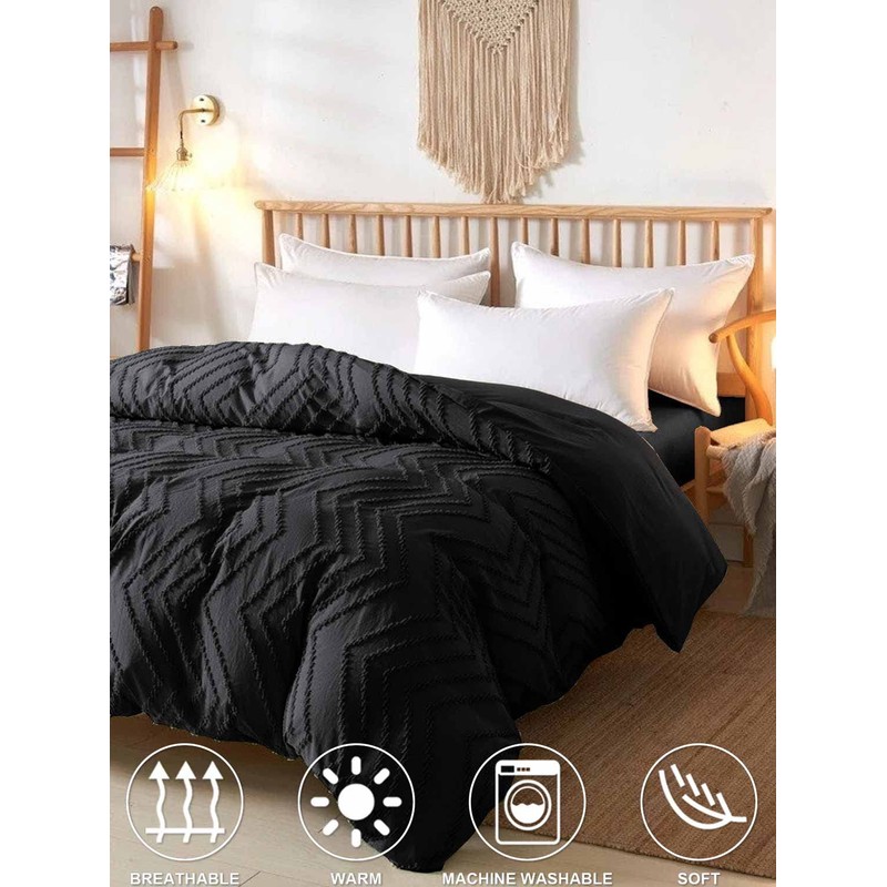 Nanko Queen Size Comforter Set Black Tufted Jacquard Boho Soft Shabby Chic Reversible Down Alternative Microfiber Bedding - All Season Duvet and 2 Pillowcases Farmhouse Bed Sets Women Men 88x90 3pc