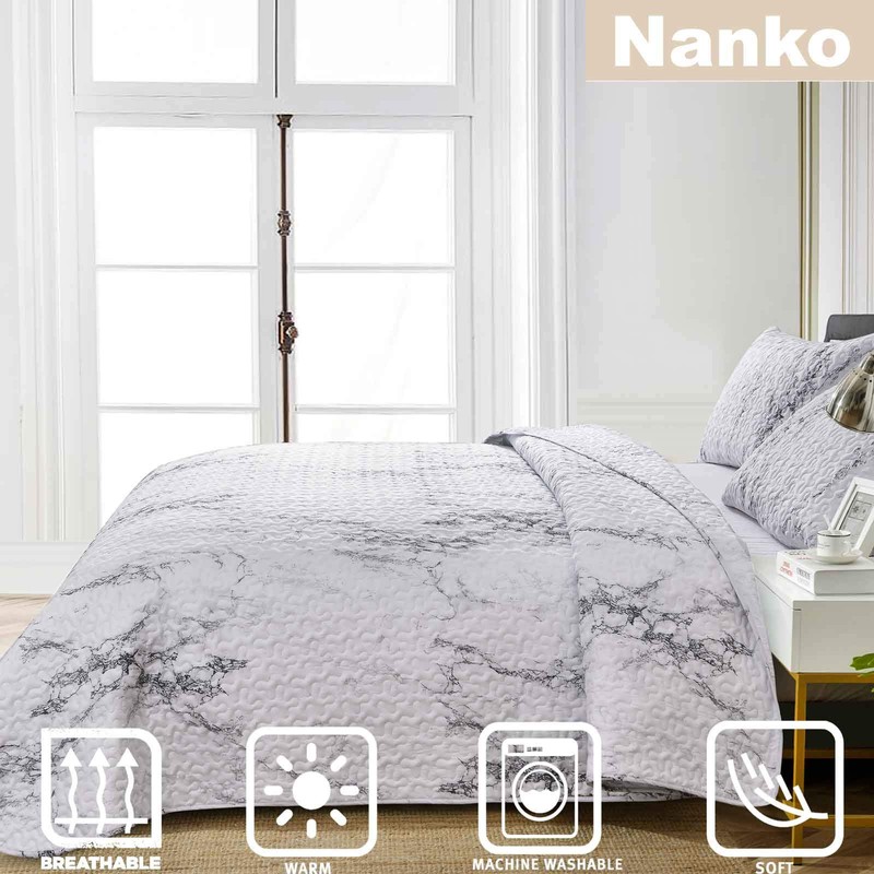 Nanko Quilt Set Queen Full Size 3 Pcs, White and Grey Black Marble Bedspreads, Soft Lightweight Coverlet Bed Spreads, Farmhouse Modern Thin Quilted Comforter Gray Bedding Sets for Women Men, 90 x 90