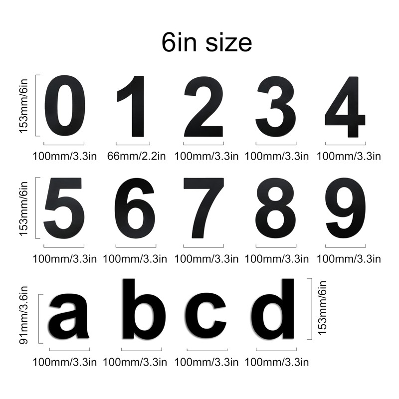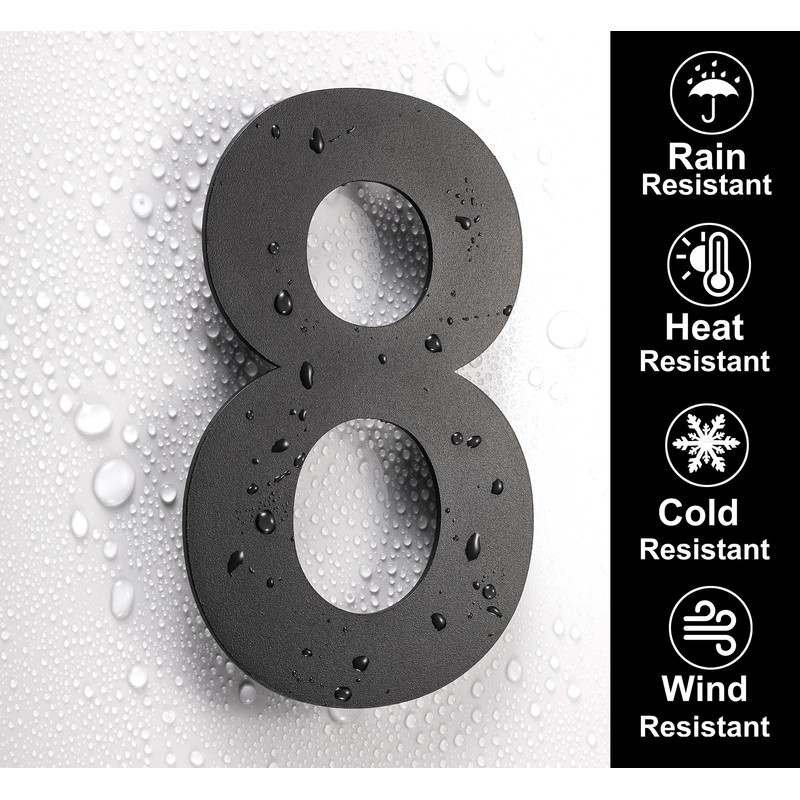 • Floating appearance. There is an 8 mm long concealed installation plug. These hidden plugs bring a modern floating effect to our numbers and letters and look like magic floating from the front. The surface adopts high-quality black fine coating powder, which is waterproof and corrosion resistant