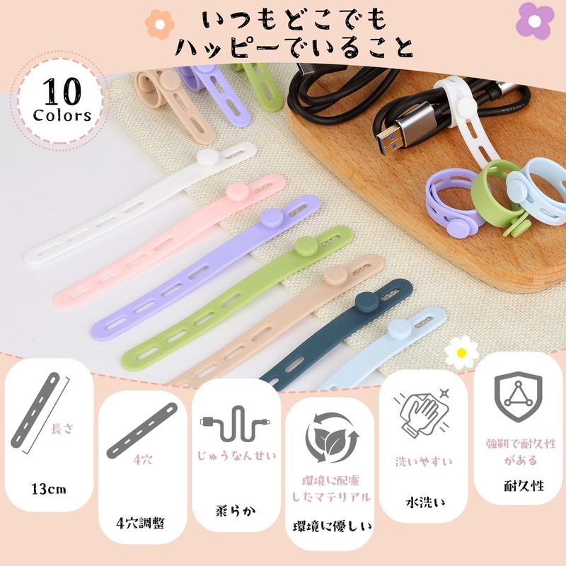 Nannlia [Set of 10] Cords, Cable Clips, Organize, Soft Feel, Reusable, Cable Bands, Cable Ties