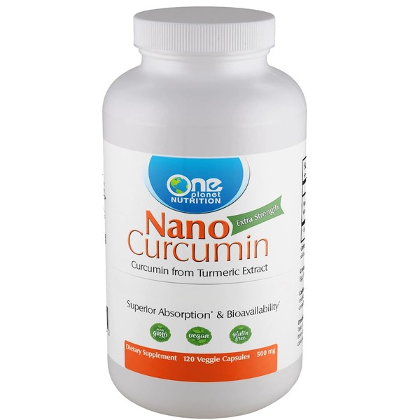 One Planet Nutrition Nano Curcumin 500 mg Veggie Capsules (120 Servings), Nano for High Absorption, Supports Immune Health, Non-GMO, Vegan, Gluten-Free