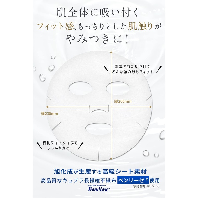 - Made using the world's only luxury sheet material produced by Asahi Kasei. The fit that adheres to the entire skin and its soft texture will be addicted once you feel it. Wide and wide type provides full face coverage In addition to aging care ingredients, we use luxurious carefully selected ingredients such as retinol (vitamin A derivatives) to provide total care for your skin problems