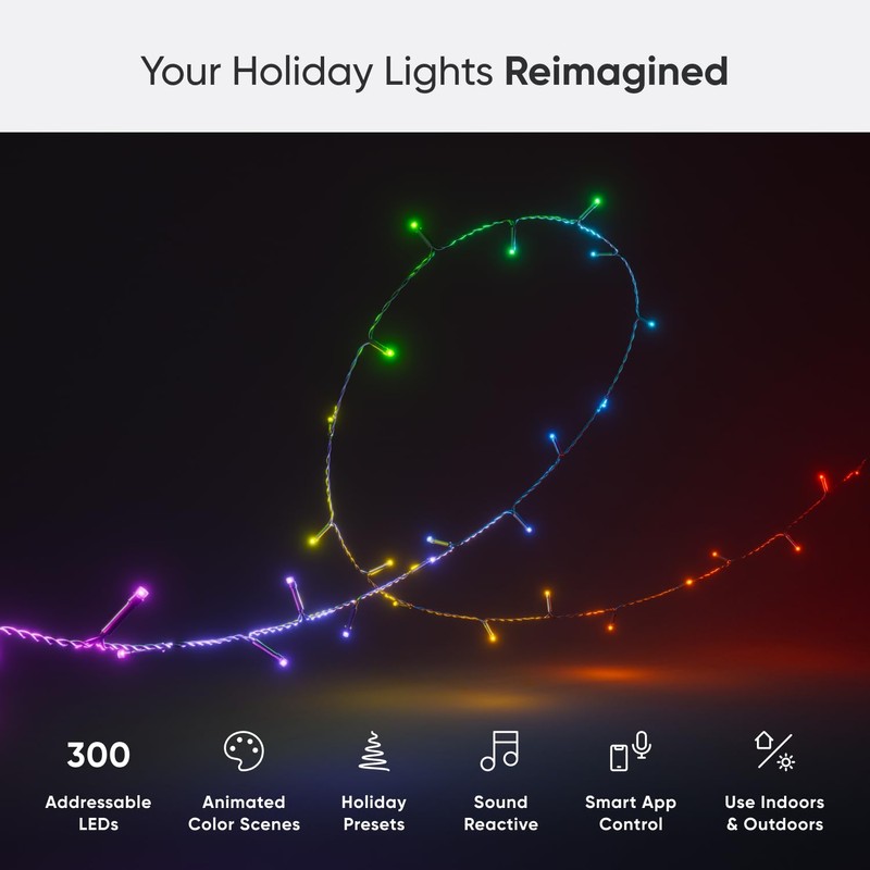 Nanoleaf Essentials Matter Bluetooth & WiFi Smart Multicolor LED Lightstrip - RGB & Whites, Controller, App & Voice Control (Works with Apple Home, Google Home) (Holiday String Lights (300 LED))