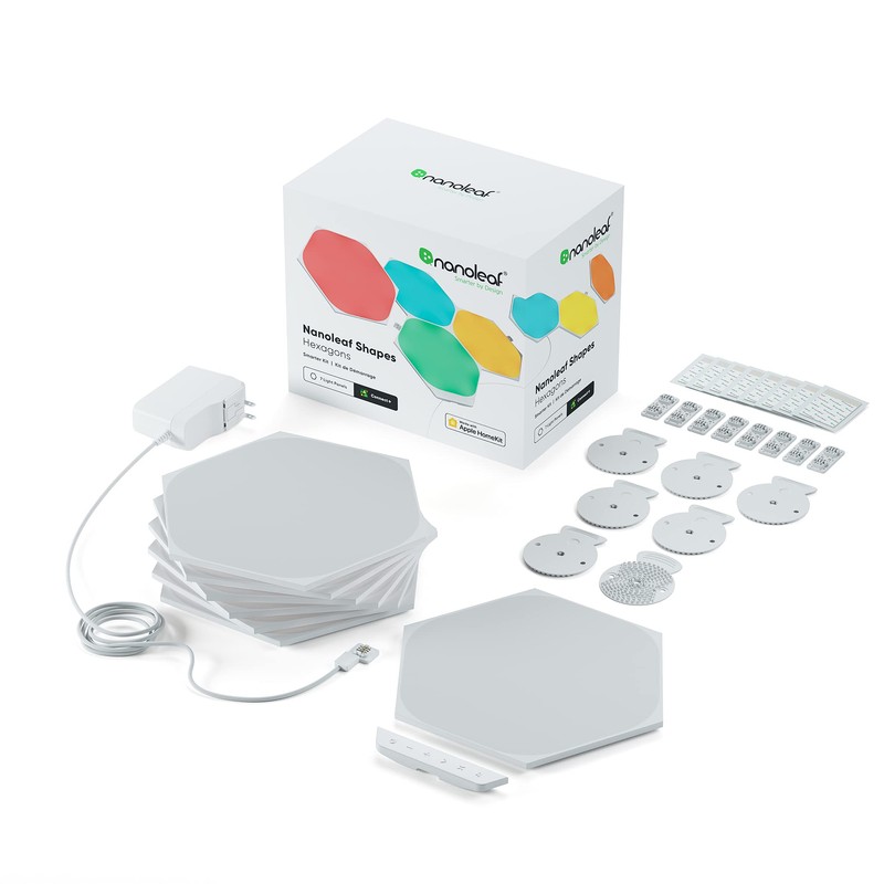 Nanoleaf Shapes Hexagons WiFi and Thread Smart RGBW 16M+ Color LED Dimmable Gaming and Home Decor Wall Lights Smarter Kit (7 Pack)