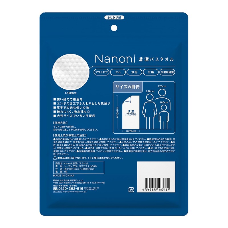 Nanoni Clean Bath Towel, Approx. 55.1 x 27.6 inches (140 x 70 cm), Set of 5, Disposable Towels, Bulk Purchase