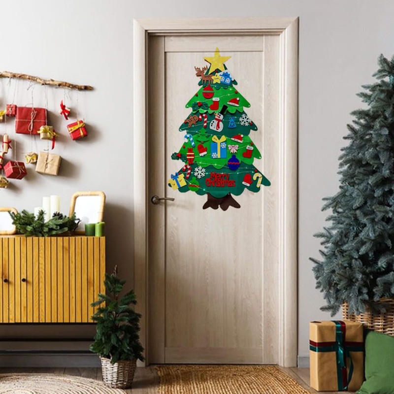 NANPENYO Felt Christmas Tree 2 Pack for Kids, 3.2ft DIY Wall Hanging Xmas Tree with 32 pcs Ornaments and 30 LEDs String Lights Christmas Decoration for Children