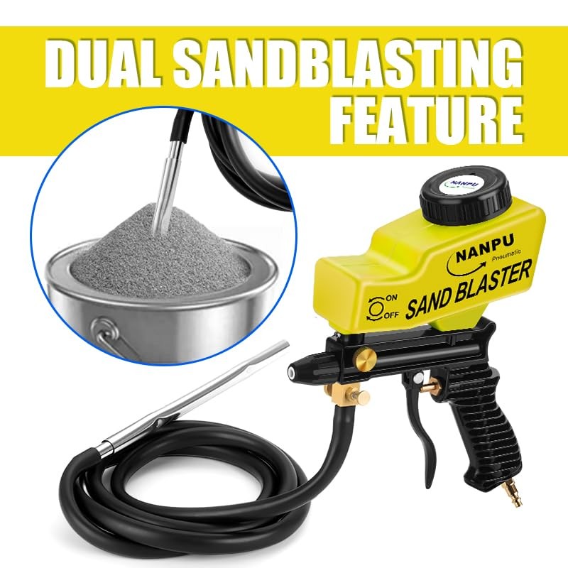 - DUAL FEED OPTIONS for FLEXIBILITY: The NANPU air sand blaster gun offers both Siphon and Gravity Feed options, providing you with greater flexibility and control over your blasting tasks. The Siphon Feed is ideal for continuous, heavy-duty work, while the Gravity Feed is perfect for smaller, detailed tasks. This dual functionality allows you to switch between feeds effortlessly, depending on the specific requirements of your project.