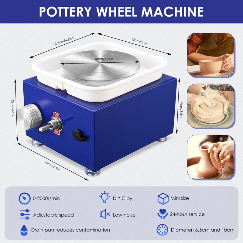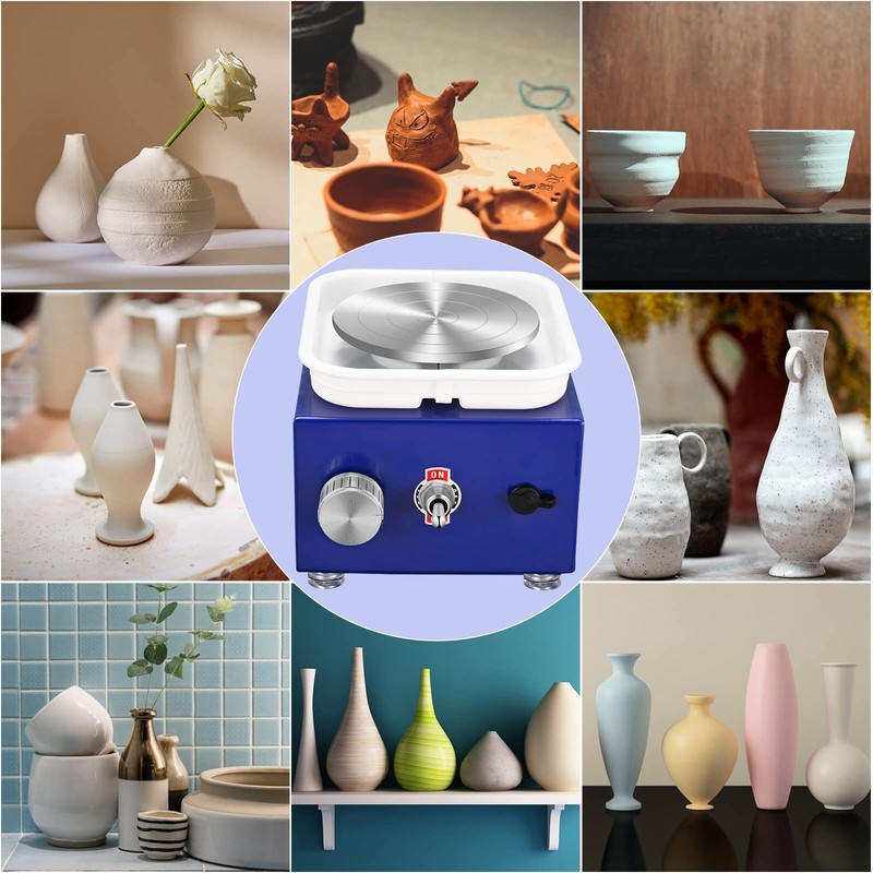 - 【Mini Pottery Wheel】: This Mini Ceramic machine adopts to high-quality metal turntable that is processed colorful spray treatment, which is beautiful and resistant to rust. Compact structure, small footprint, good mud shielding, easy operation.
