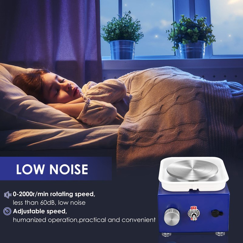 - 【Strong Motor & Low Noise】: Adopting to high quality motor and the wheel rotates smoothly. 30w motor, 0-2000r/min rotating speed, less than 60dB, low noise. Adjustable speed and turntable height, easy operation, giving you a quiet creation experience.
