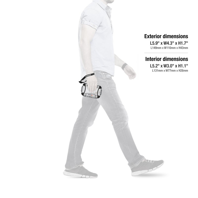 - Interior Dimensions L5.2" x W3.0" x H1.1" | Exterior Dimensions L5.9" x W4.3" x H1.7"