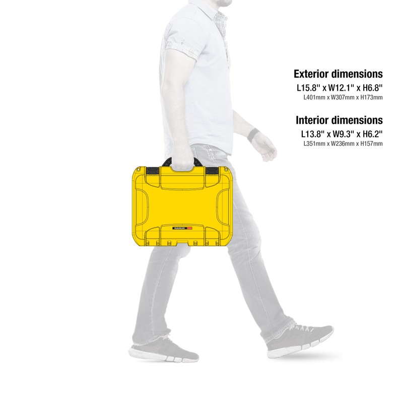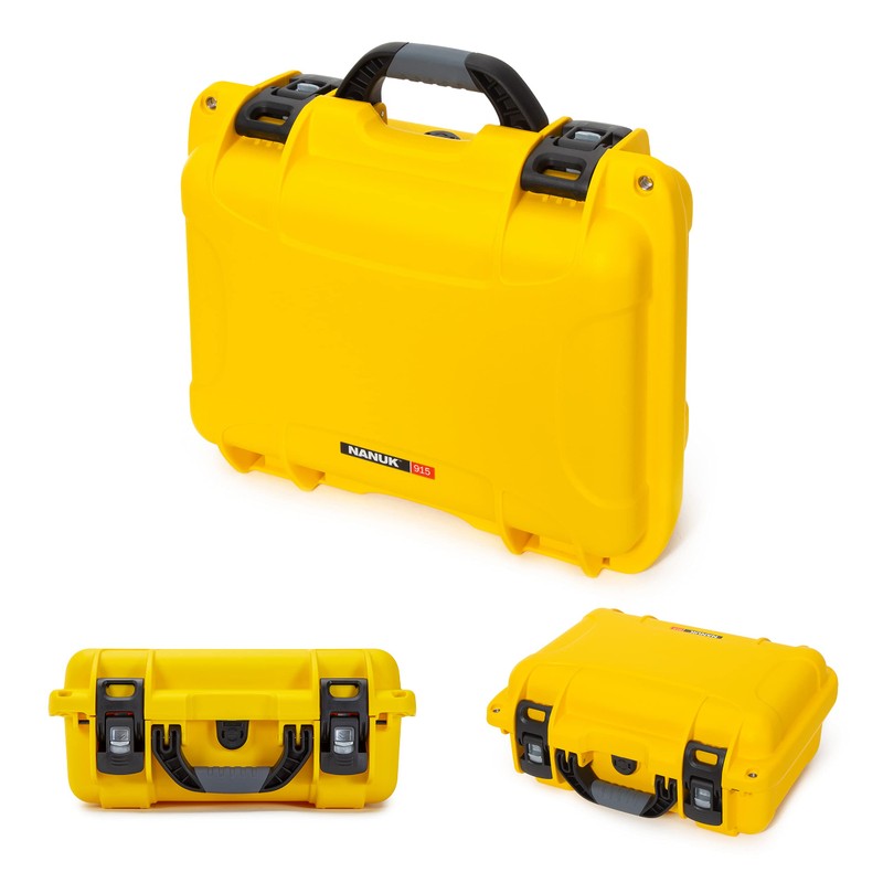 Nanuk 915 Pro IP67 Rated Impact-Resistant Waterproof NK-7 Resin Shell Airline Carry-On Photo Kit Hard Case with Soft Grip and Ergonomic Handle, PowerClaw Superior Latching System (Yellow)