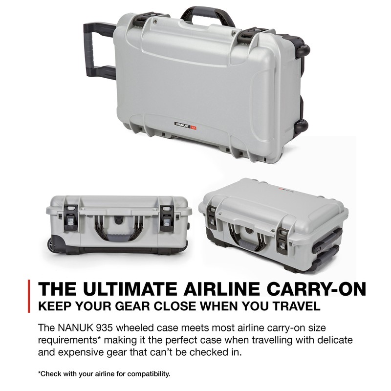 NANUK Wheeled Series 935 Lightweight NK-7 Resin Waterproof Protective Case for DSLR Camera, 3 Lenses, Flash, Silver