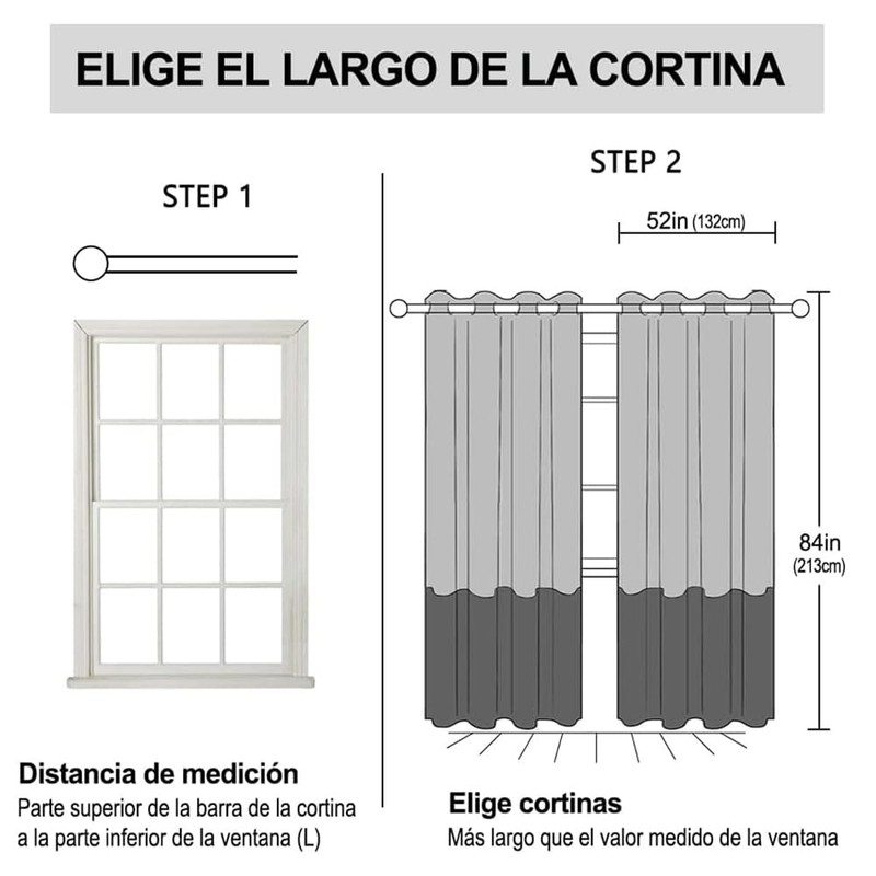 - ESCENA PRÁCTICA: Elija el tamaño de las cortinas que deben ser más grandes que el tamaño de la ventana para asegurarse de que las cortinas puedan cubrir completamente su ventana, la longitud de la cortina incluye la parte del ojal. Las cortinas blackout se pueden combinar perfectamente con las escenas interiores, como el dormitorio, la sala de estar, la habitación del bebé, la guardería, etc.