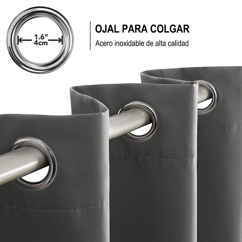 - LISTO PARA USAR: Las cortinas blackout incluyen 2 paneles y cada panel mide 132 x 213.3cm. Las cortinas con ojales (diámetro interior del ojal de 4cm) son más fáciles de colgar, deslizar y desmontar. Equipado con 1 corbata, conveniente para atar cortinas para ahorrar espacio. (AVISO: Mida primero el tamaño de su ventana al comprar)