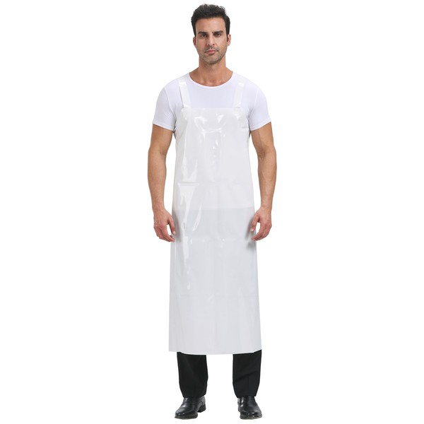 Nanxson Unisex Apron TPU Waterproof Apron H-shaped Shoulder Strap Work Apron for Pet Care CFS0009, White