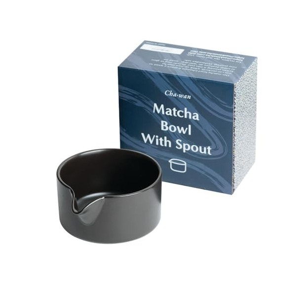 Naoki Matcha Naoki Matcha Traditional Ceramic Chawan Matcha Tea Bowl with Pour Spout Set - Hand Made Ceramic with Black Matte Glaze - For Perfectly Whisked Matcha Green Tea (18 Ounce)