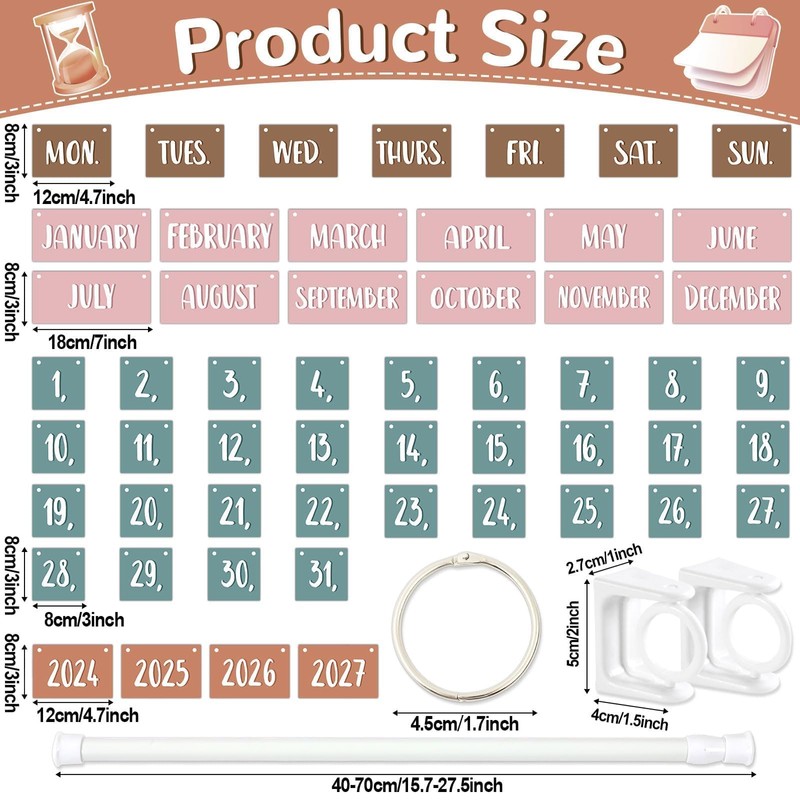 Reliable material: The calendar cards are made of thick paper, practical, strong and durable; the holder ring is very strong, and the 40-70cm holder can help you choose the size you want.