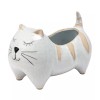 Napco Happy Striped Kitty Cat 8x5.5x2.75 in. White Beige Ceramic Planter