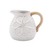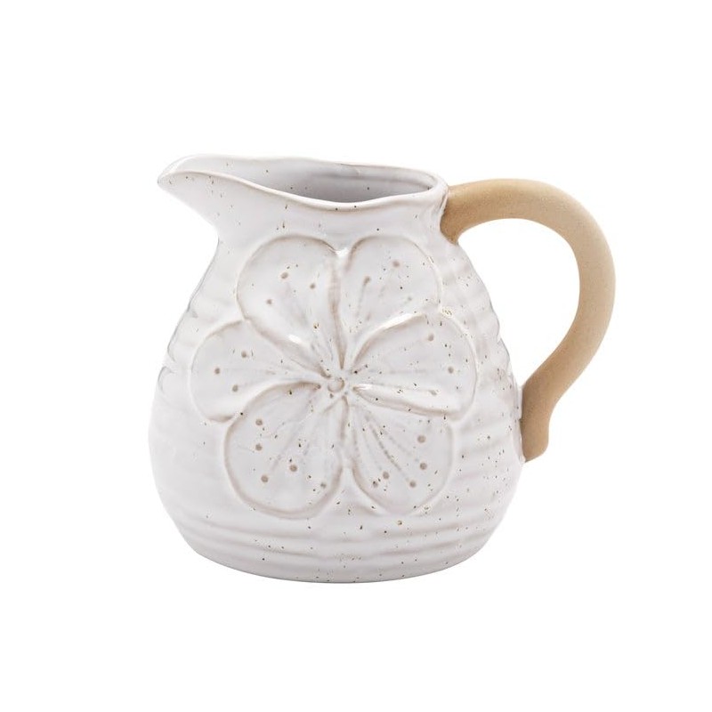 - DECORATIVE & FUNCTIONAL - Featuring a delicate embossed floral design on a speckled white glaze finish; With a charming rustic handle in a natural unglazed texture, this piece blends farmhouse, boho, and cottagecore aesthetics effortlessly
