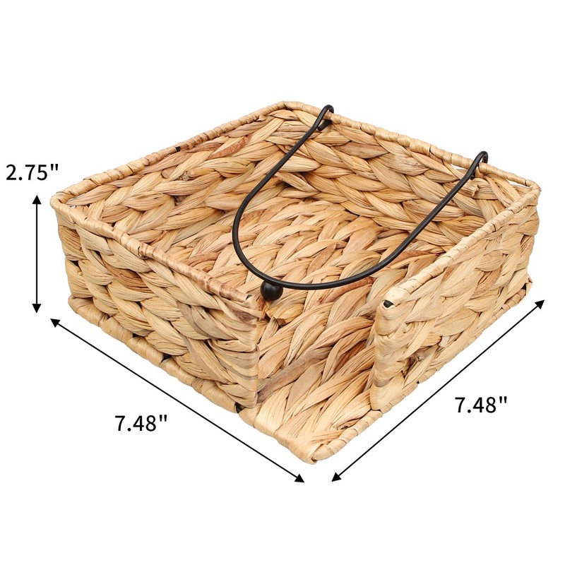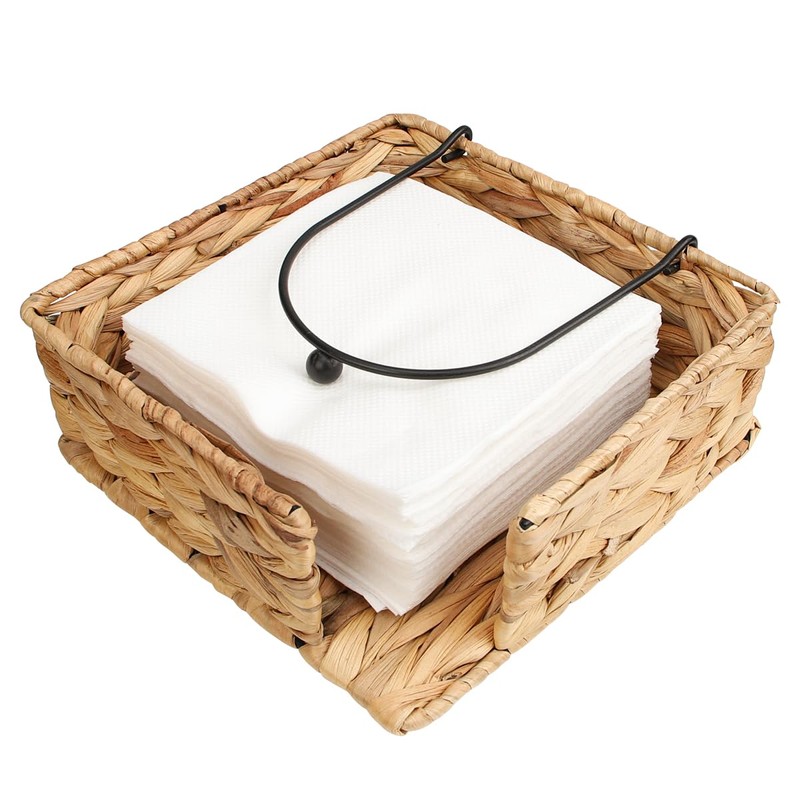 • High-Quality Material:Handcrafted from natural water hyacinth, clean renewable resources.This napkin holder features a weighted metal arm with a bead to keep napkins tidy and in place