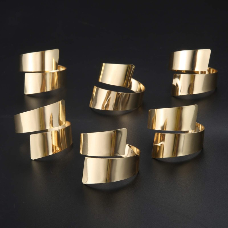 • Napkin Ring Size: Diameter: Approx 4.5cm /1.77" Material: Alloy Color: Gold Set: 6 pcs