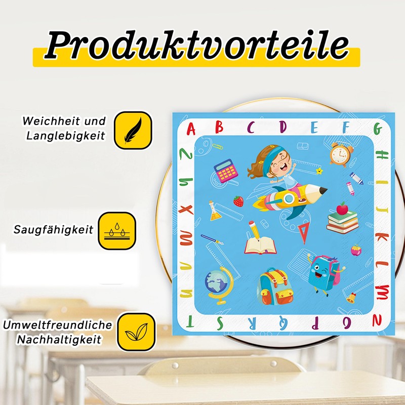 - High-quality school introduction napkins: Our napkins are made of high quality, which ensures durability and absorbency. They are soft to the touch, but strong enough to withstand spills and messes, making them an essential part of any school-related celebration. Enjoy the convenience of disposable napkins without sacrificing quality and style.