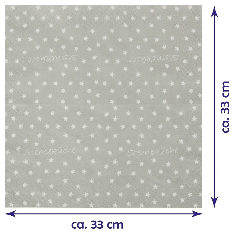 Napkins in Practical Pack of 100 (5 x 20) 33 x 33 cm, 3-Ply, 1/4 Fold - with Motif (Star Kitchen) - FSC-Certified Mouth Cloths