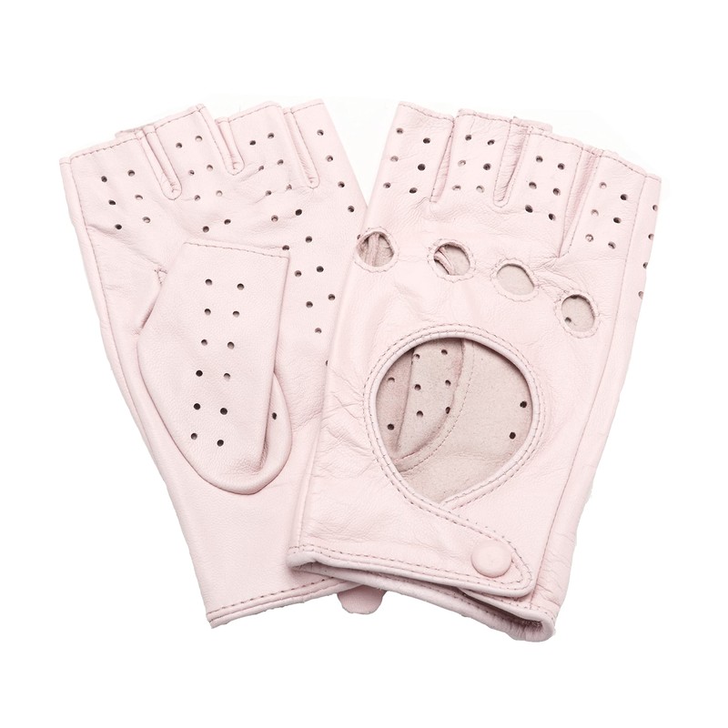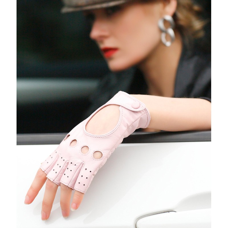 NappaNovum Women Classic Fingerless Nappa Leather Driving Gloves Lambskin Fitness Outdoor Unlined Gloves (M, Pink)